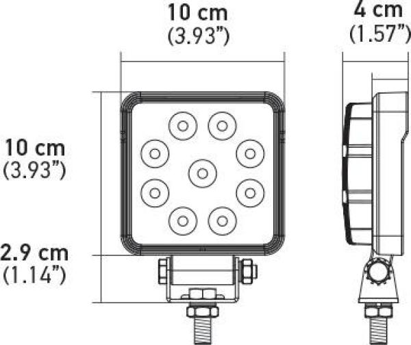 - Hella ValueFit LED Work Lamp; 4 Square 1.0 LED; Multivolt; Close Range; Black;