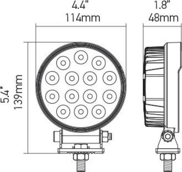 - Hella ValueFit LED Work Lamp; 5 Round 2.0 LED; Multivolt; Close Range; Black;