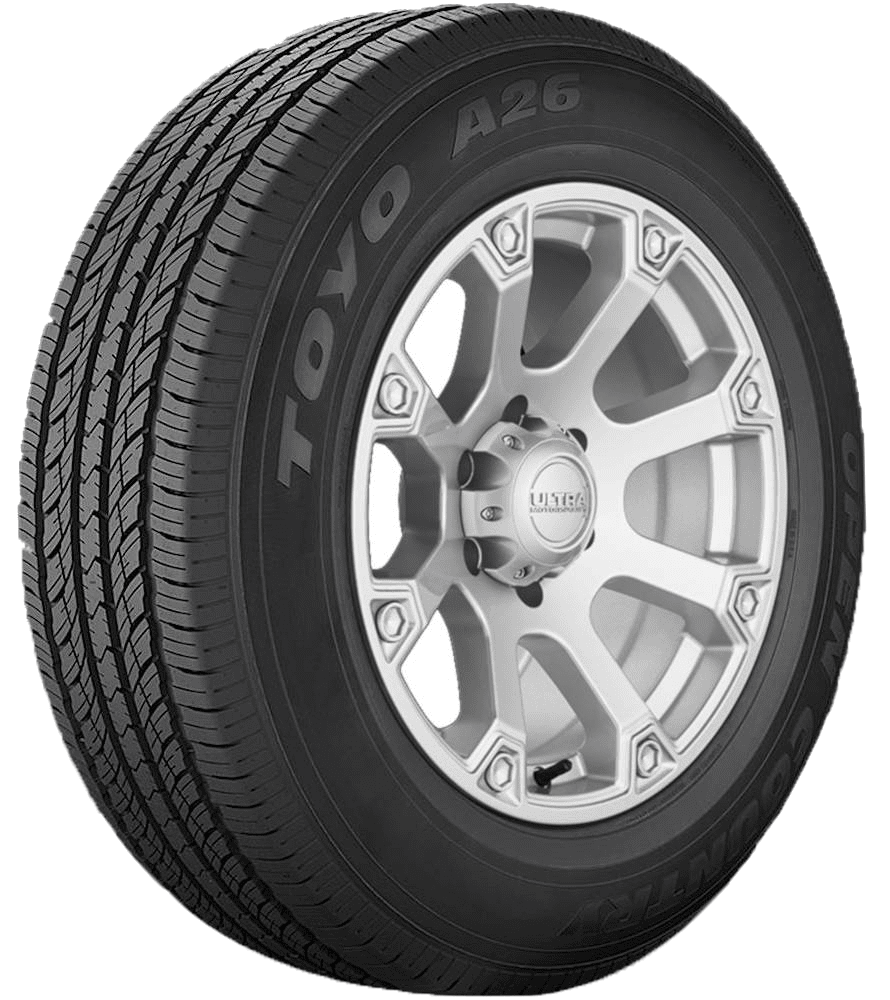 Toyo Tire Open Country A26 is an all-season tire for light trucks and pick-ups. It is made of a special rubber compound that provides traction on dry, wet roads and reduces rolling resistance. Open Country A26’s internal belts and materials absorb road bumps without generating excessive heat.